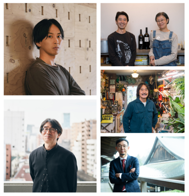 左上:秋吉浩気(VUILD代表取締役CEO)、左下:馬場正尊(オープン・エー代表取締役/建築家 /東北芸術工科大学教授)、右上:石井英史/石井美穂(ワインバー「祖餐」オーナー)、右中:小嶋淳志(鎌倉ロコマート&ガーデン/鎌倉御成商店街協同組合理事長)、右下:柳澤大輔(面白法人カヤック 代表取締役CEO)※敬称略